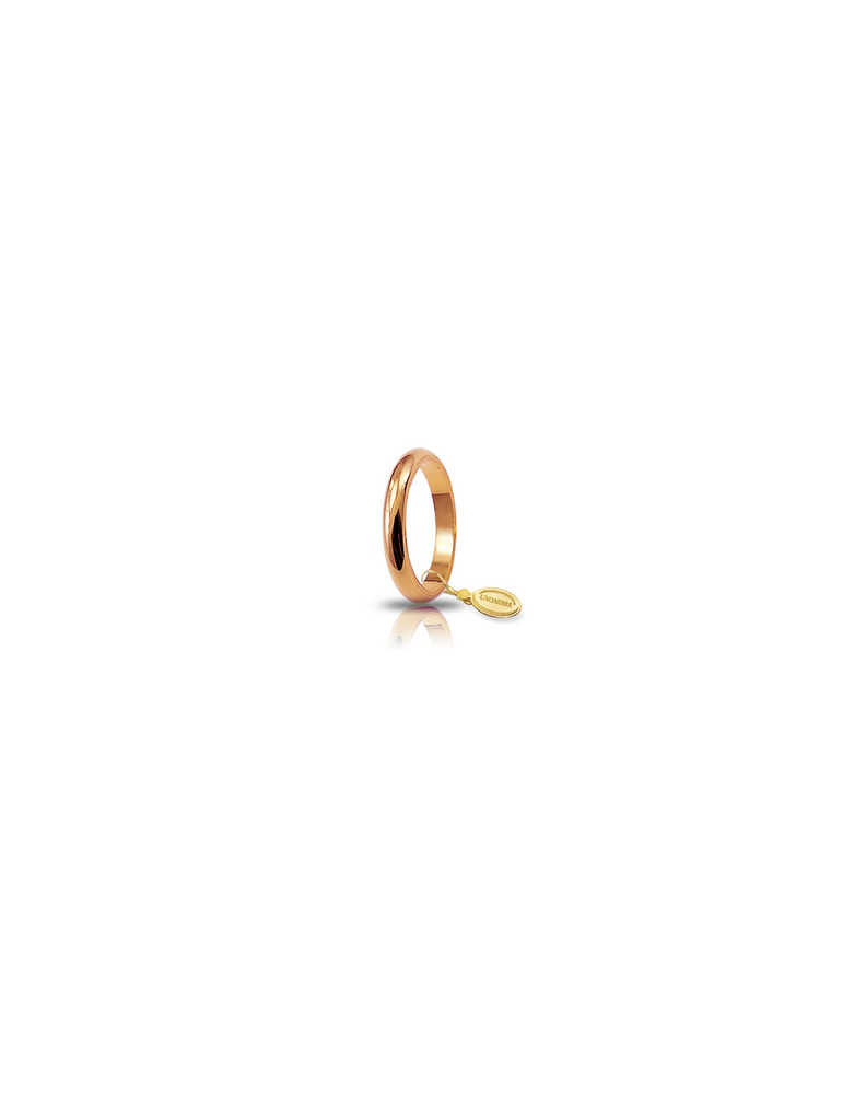 Fede Classica "Francesina" bombata liscia in oro 750. Gr 4,00 - Mm 2,85 Un anello dalla forma costante e perfetta, senza inizio, senza fine, simbolo prezioso di unione, per tutta la vita.